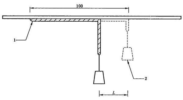将试样反光膜朝下,平放在符合JT/T 685要求的仪器上,如图6所示,反光膜的余留端上悬挂800g±4g的重锤,与试样板成80°角下垂,5min后,测出反光膜被剥离的长度L。